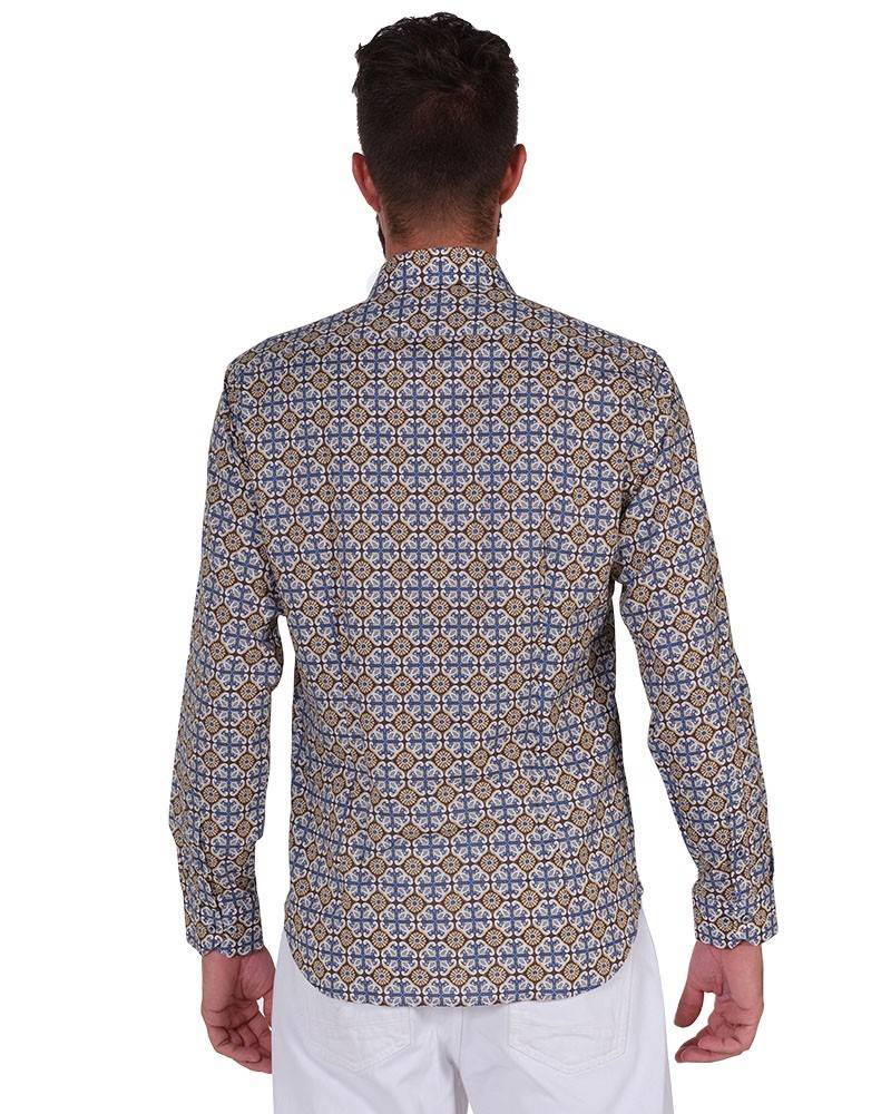 Poggianti Camicia Fantasia Collo Morbido Azzurro/Marrone Spedizione Gratuita