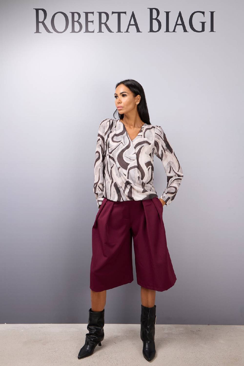 Camicia fantasia con incrocio e piastrina strass "RB"